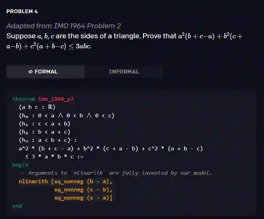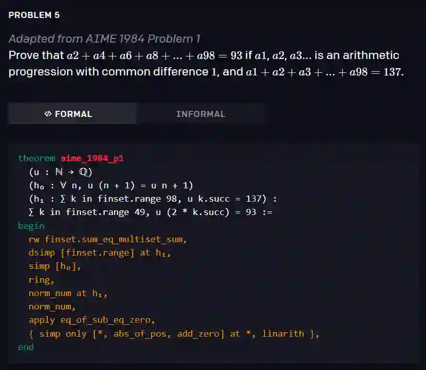 由于 Lean 剑指金牌,研究人员一直在对其进行不停的打磨,其中也包括被微软收购了的 OpenAI。刚刚,OpenAI 发文表示,他们已经为 Lean 创建了一个神经定理证明器,用于解决各种具有挑战性的高中奥林匹克问题,包括两个改编自 IMO 的问题和来自 AMC12、AIME 竞赛的若干问题。