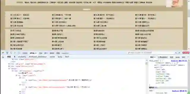 继续往下看,发现是最新章节板块,然后便是全书的所有目录。我们分析的对象便是全书所有目录。点开其中一个目录,我们便可以都看到正文内容。