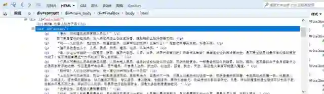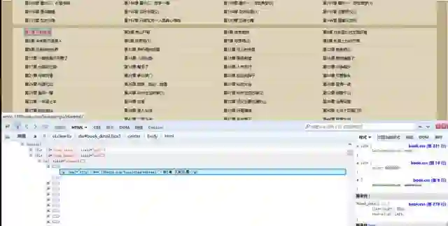 有耐心的朋友可以在里面找到对应的章节目录内容。有一个简便方法是点击审查元素中左上角箭头标志的按钮,然后选中相应元素,对应的位置就会加深显示。