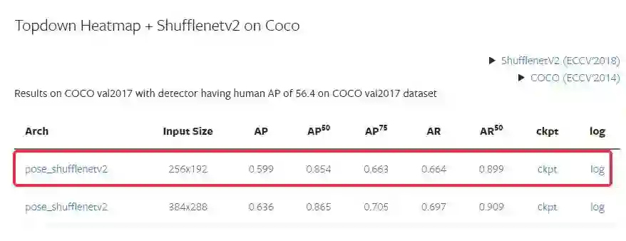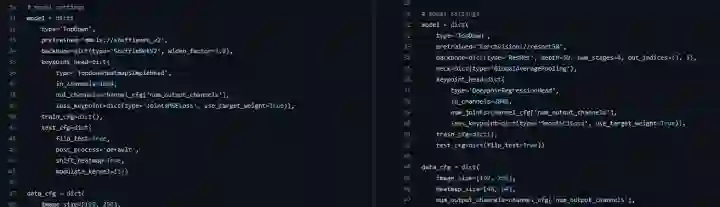 去翻了翻文档里已有的模型记录,虽然当前mmpose并没有轻量模型+回归方法的baseline,但我找到了ResNet50+Regression和ShuffleNetV2+Heatmap在COCO上的两个baseline,所以我很自然地可以参考这两个配置文件来搭建我的目标。