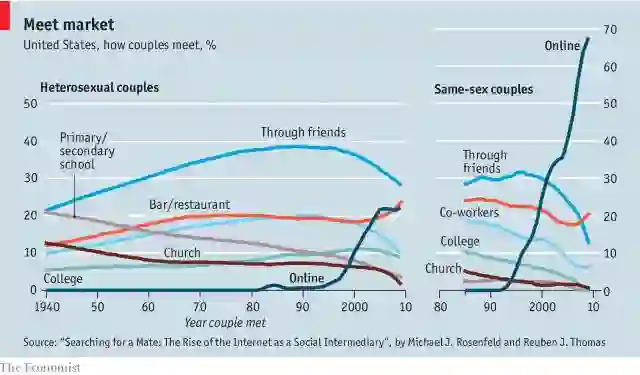 此后,在移动互联网的加持下,借助于移动App展开社交,已经成为年轻人不二的选择。即使在美国这样一个拥有非常强盛酒吧搭讪文化、朋友聚会频繁且深层次的国度中,“Online”也已经在交友渠道上和“Bar”不相上下,几乎成为了第二大渠道。“Through friends”虽然还是第一大渠道,但已经明显衰落。