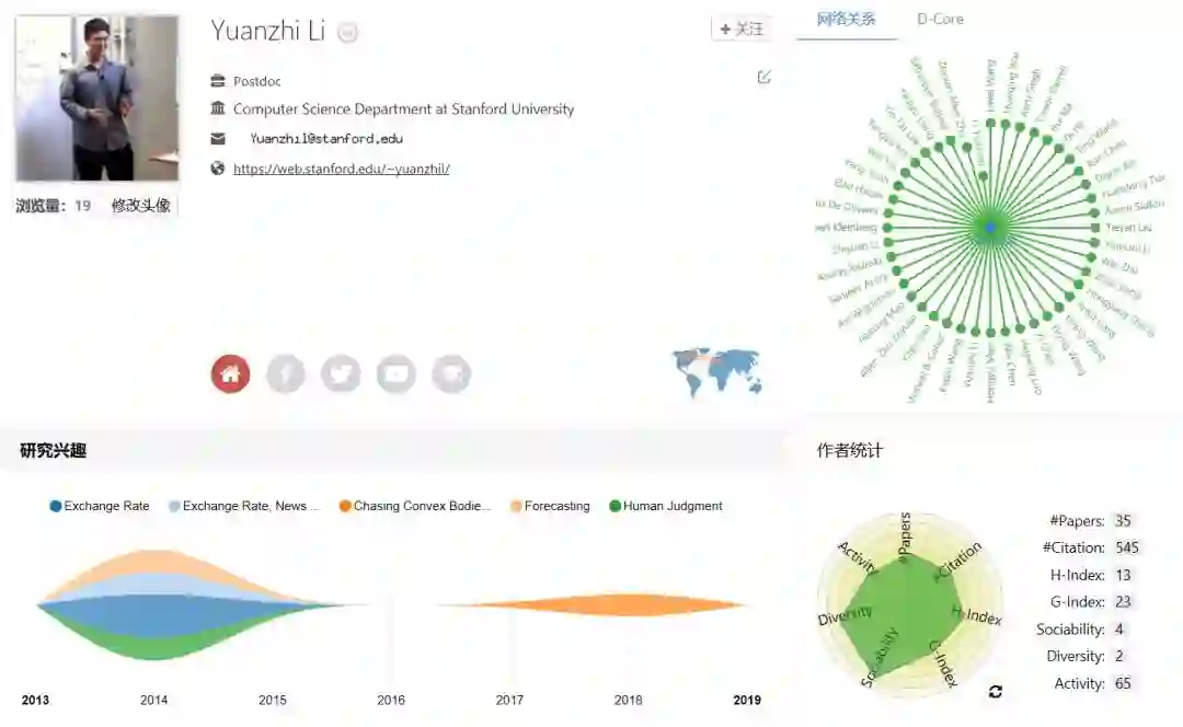 斯坦福大学计算机科学系博士后Yuanzhi Li有6篇论文入选。Yuanzhi Li本科毕业于清华大学,获得了计算机科学和数学学士学位。博士前往普林斯顿大学计算机科学系就读,师从Sanjeev Arora教授。他的研究方向为机器学习,目标是为机器学习问题设计有效且可验证的算法。