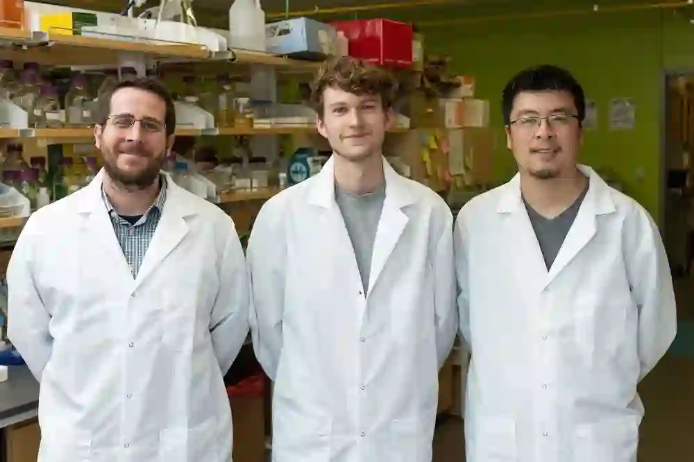 Jason S. McLellan(左);论文共同第一作者、德克萨斯大学奥斯汀分校博士生 Daniel Wrapp(中)和研究助理王年爽(右)