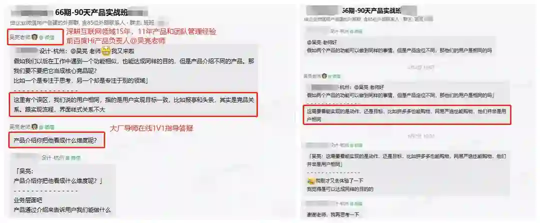 在学完产品的基础知识之后,我继续在班级群请教授课的老师们,老师们的方法论、过往经验都给了我很大的启发!