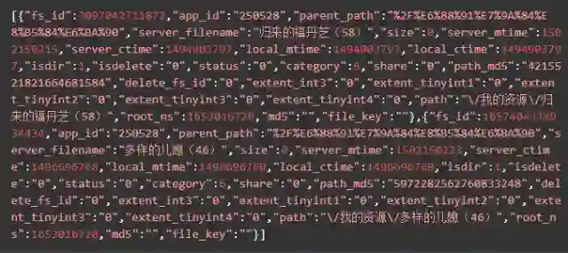 yunData.PATH 只指向了一个路径信息,完整的 filelist 可以从 yunData.FILEINFO 里提取,它是一个 json ,list 里的信息是Unicode编码的,所以在控制台看不到中文,用Python代码访问并获取输出一下就可以了。