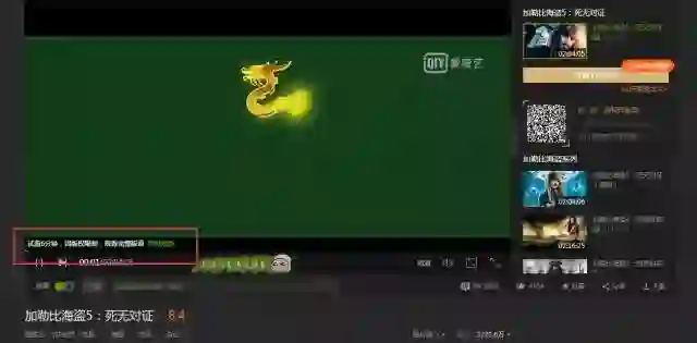 爱奇艺的VIP视频只有会员能看,普通用户只能看前6分钟。比如加勒比海盗5的URL:http://www.iqiyi.com/v_19rr7qhfg0.html#vfrm=19-9-0-1