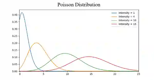 泊松分布与正态分布相似,但存在偏斜率。象正态分布一样,在偏斜度值较低的情况下,泊松分布在各个方向上具有相对均匀的扩散。但是,当偏斜度值非常大的时候,我们的数据在不同方向上的扩散将会是不同的。在一个方向上,数据的扩散程度非常高,而在另一个方向上,扩散的程度则非常低。