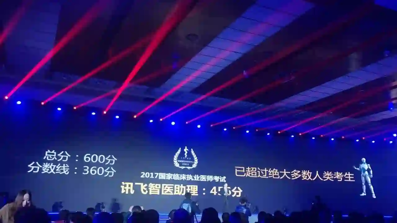 刘庆峰透露,在安徽两万多名的考生中,科大讯飞“智医助理”以 456 分进入前 100 名。虽然考试都是选择题,但是因为数据库的保密,为了训练智医助理,机器学习了医学考试的相关论文、教科书。让机器通过多语义深度学习,关键信息理解、上下文理解、证据链的推理,才能获得成果,从而使得智医助手超过 90% 的专家。