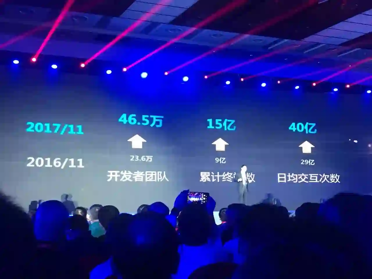 图丨AIUI平台,实名注册的开发者团队已经已经从去年的 23.6 万上升到 46.5 万,累积终端数达到 15 亿