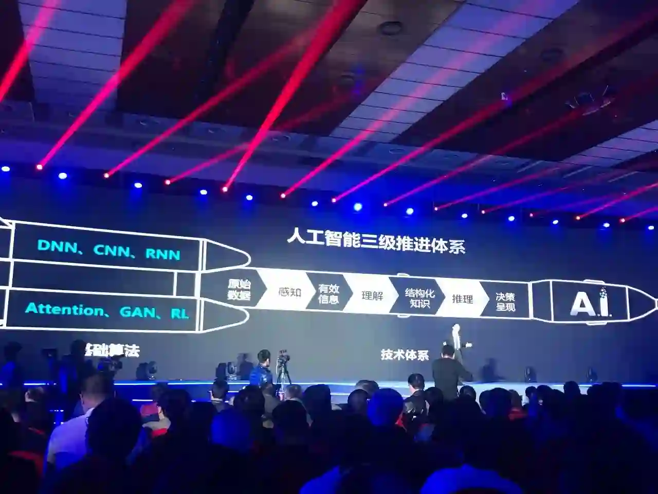 图丨刘庆峰董事长讲解人工智能三级推进系统