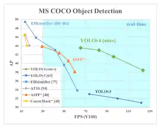 在MS COCO 数据集 实现 43.5% AP (65.7% AP50 ), 速度也更快了,在Tesla V100 GPU上 ∼65 FPS!