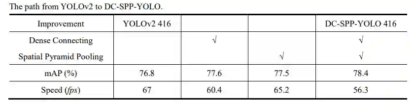 该作提出一种DC-SPP-YOLO(基于YOLO的密集连接和空间金字塔池化技术)的方法来改善YOLOv2的目标检测精度。
