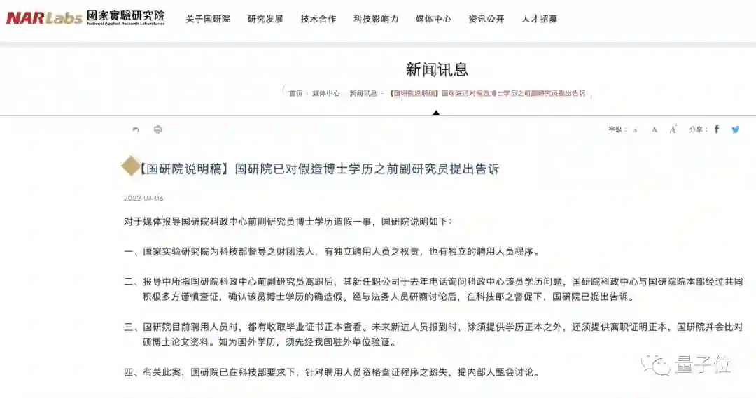 至于当初“假博士”怎么过审进来的,他们没有在院官网公告,只是表示以后会加强审核,比如一定要查看毕业证原件,一定要比对硕博士毕业论文……