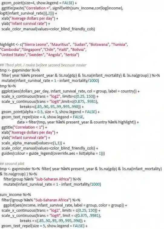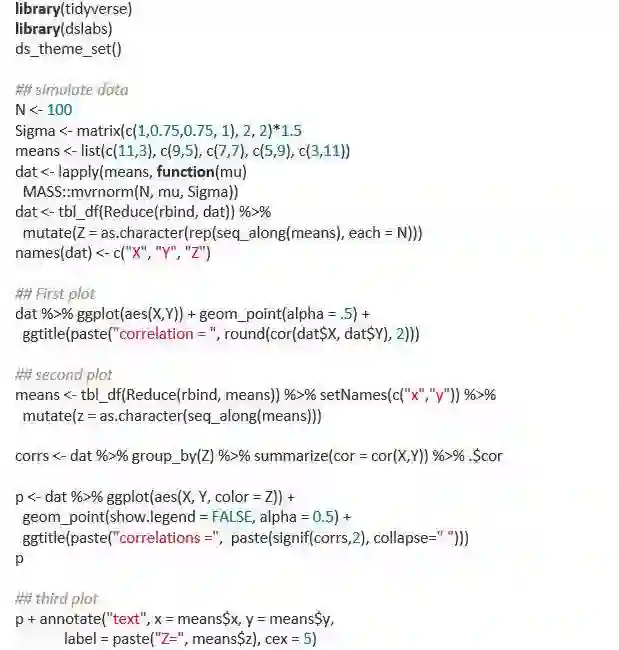 作者Rafael Irizarry是哈佛大学以及the Dana-Farber Cancer Institute的应用统计教授,他专注于研究基因组学,并且教授数门数据科学课程。在本文中他公开了自己授课时所使用的gif动图的R语言源码,同时也对涉及的几个话题进行了简单的论述,对于希望了解数据科学原理、如何使用R语言来进行可视化的读者都有所助益。