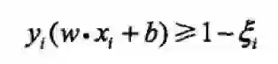线性可分问题的支持向量机学习方法,对现行不可分训练数据是不适用的。所以讲间隔函数修改为软间隔,对于函数间隔,在其上加上一个松弛变量,使其满足大于等于 1。约束条件变为: