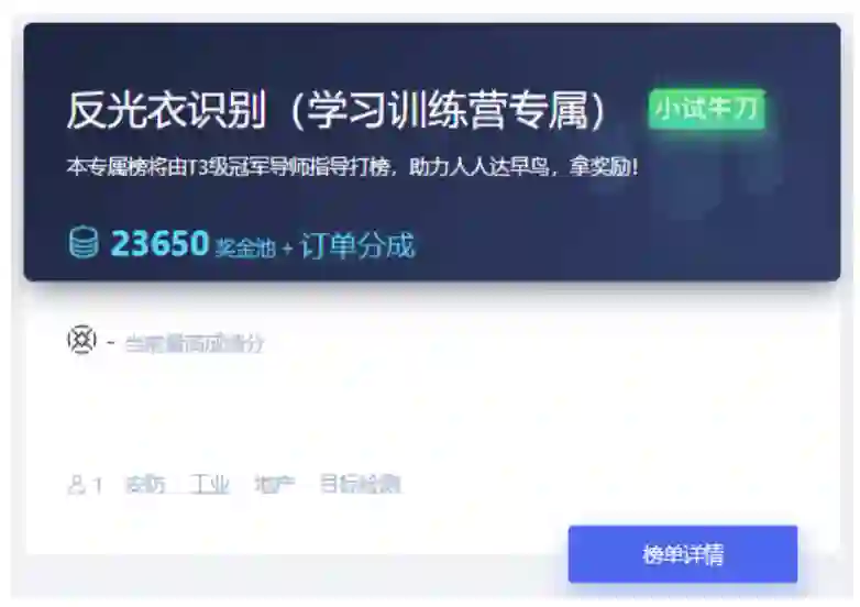 极市打榜是面向计算机视觉开发者的算法竞技,参与者人人都可以通过提高算法分数获得早鸟奖励(0.7/0.8/0.9)+分分超越奖励(每超越第一名0.01分),排行榜前三名的胜利者将有机会获得该算法的极市复购订单,获得持续的订单收益。打榜算法每周上新!