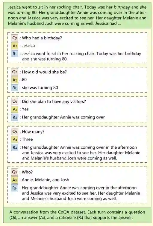CoQA中的问题很短,更倾向于模仿人类对话。此外,第一个问题之后的每个问题都取决于过去的对话内容,使得这些简短问题对于机器而言更难解析。例如,假设你曾问过系统,“微软的创始人是谁?”当提出后续问题“他什么时候出生的?”时,其实仍然在谈论同一话题。