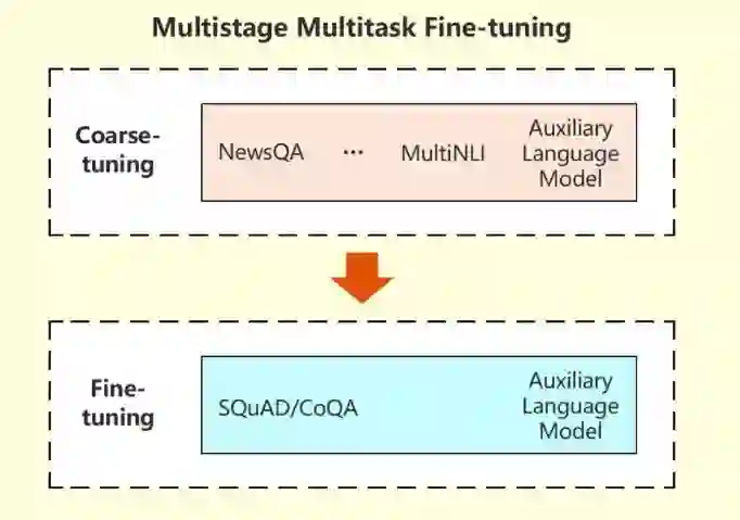 微软的研究人员采用了一种特殊策略,将机器从其他几个相关任务中学习的信息用于改进目标机器阅读理解(MRC)任务的表现。在这种多阶段、多任务的微调方法中,研究人员首先在多任务设置下从相关任务中学习MRC的相关背景信息,然后在目标任务上对模型进行微调。