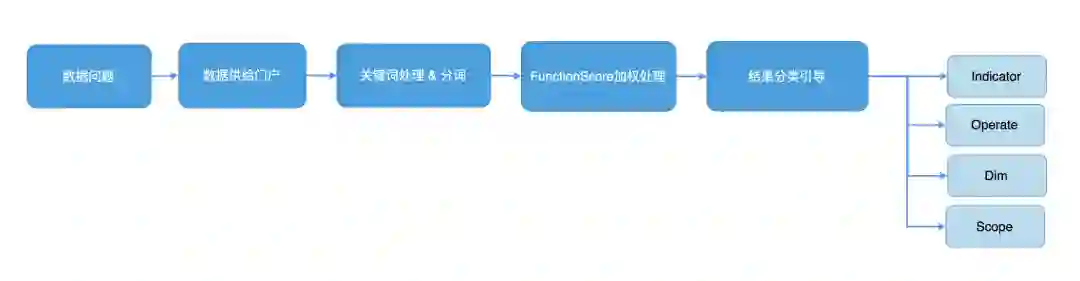 技术侧:平台数据资产同步到至搜索引擎,当然还有三个核心处理技术点处理一下1:关键字提取与分词规则 2:搜索结果FunctionScore加权 3:结果分类引导。