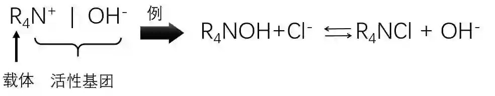 同样,阴离子交换树脂上的OH-离子可以电离被置换到水中,表现为水中的阴离子杂质(如Cl-,SO42-,CO32-等)被树脂吸收: