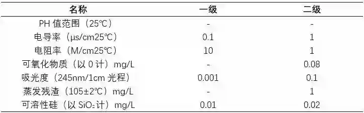 (两种去离子水技术要求参数举例 | 来源:百度文库)