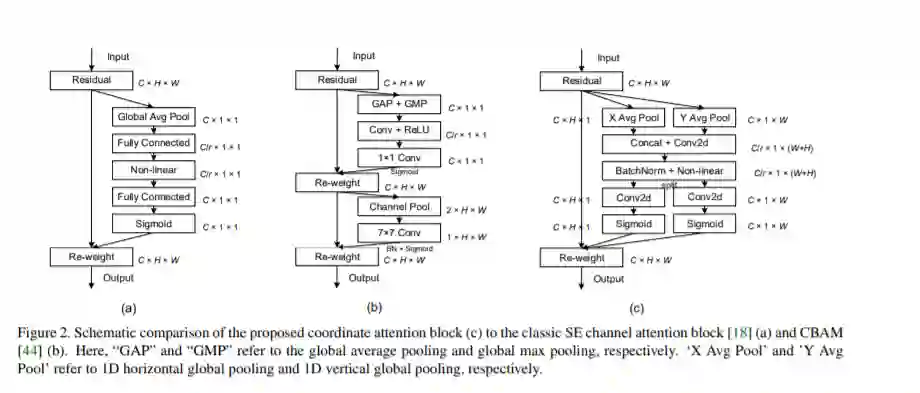 移动网络设计的近期研究表明:通道注意力(如Squeeze-and-Excitation)机制对于提升模型性能极为有效,但是忽略了位置信息,这对于生成空间选择注意力图非常重要。