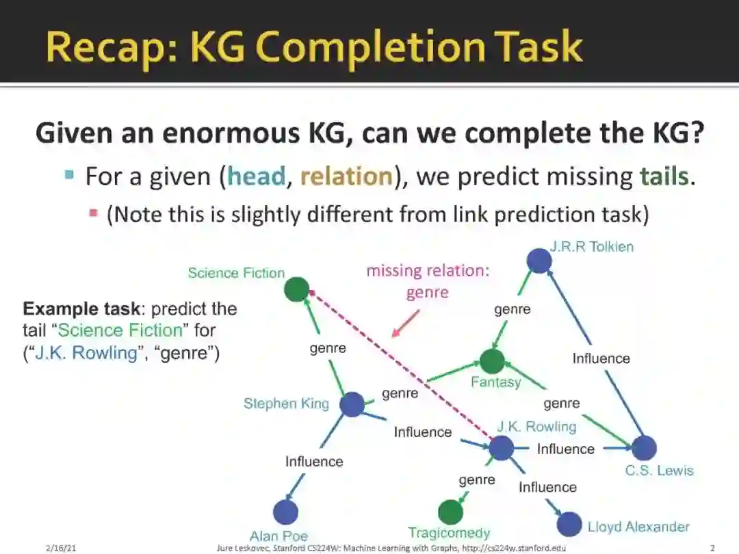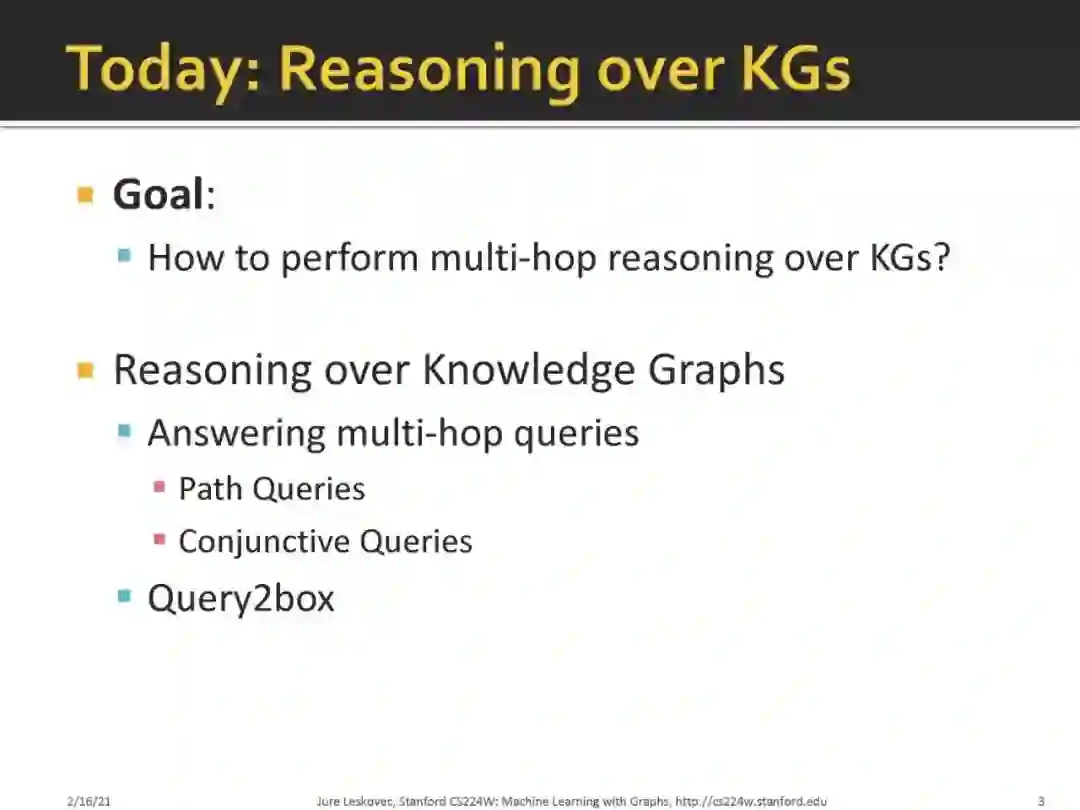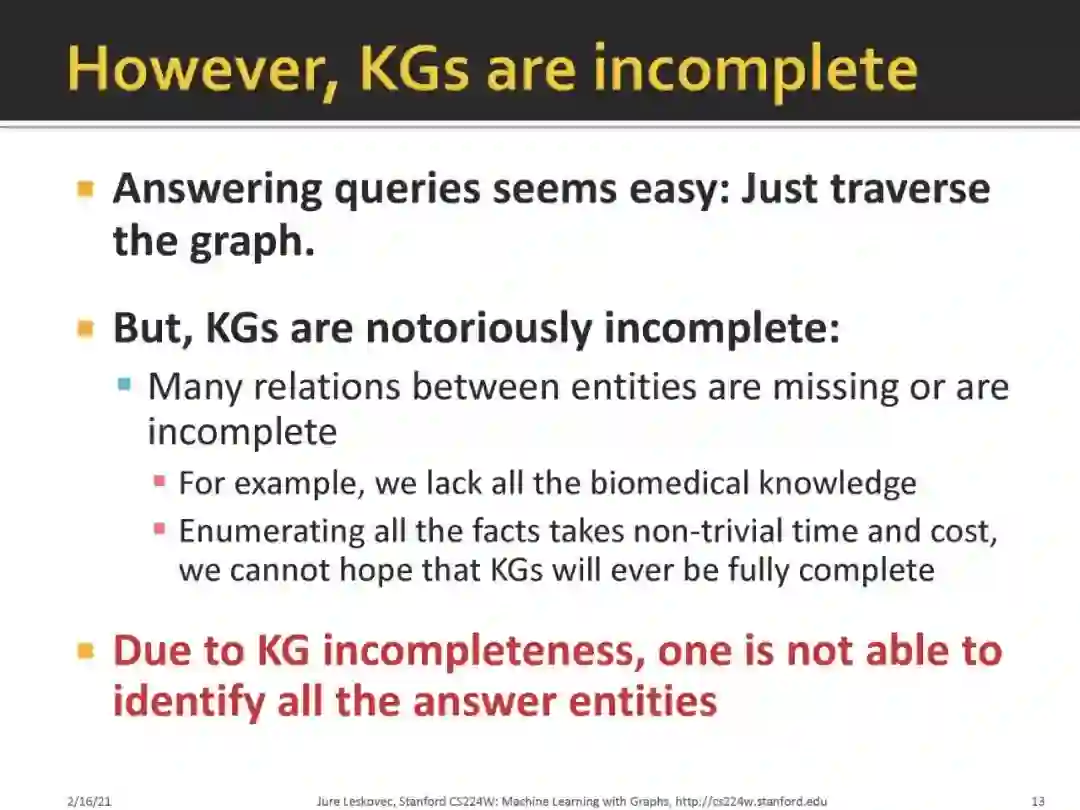 CS224W图机器学习课程讲述了《知识图谱推理》最新进展PPT。
