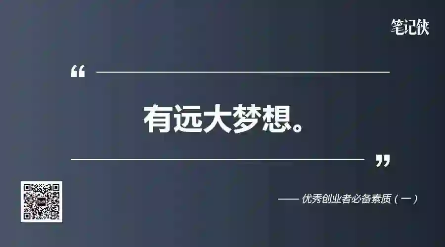 1.优秀的创业者必备的素质之一:有远大梦想。