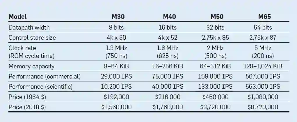 图 | IBM System/360 系列的四个型号