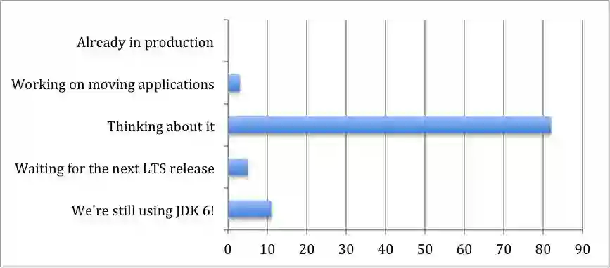 大多数开发者都表示,他们将继续在生产环境中使用 JDK 8,至少直到下一个 LTS 版发布。