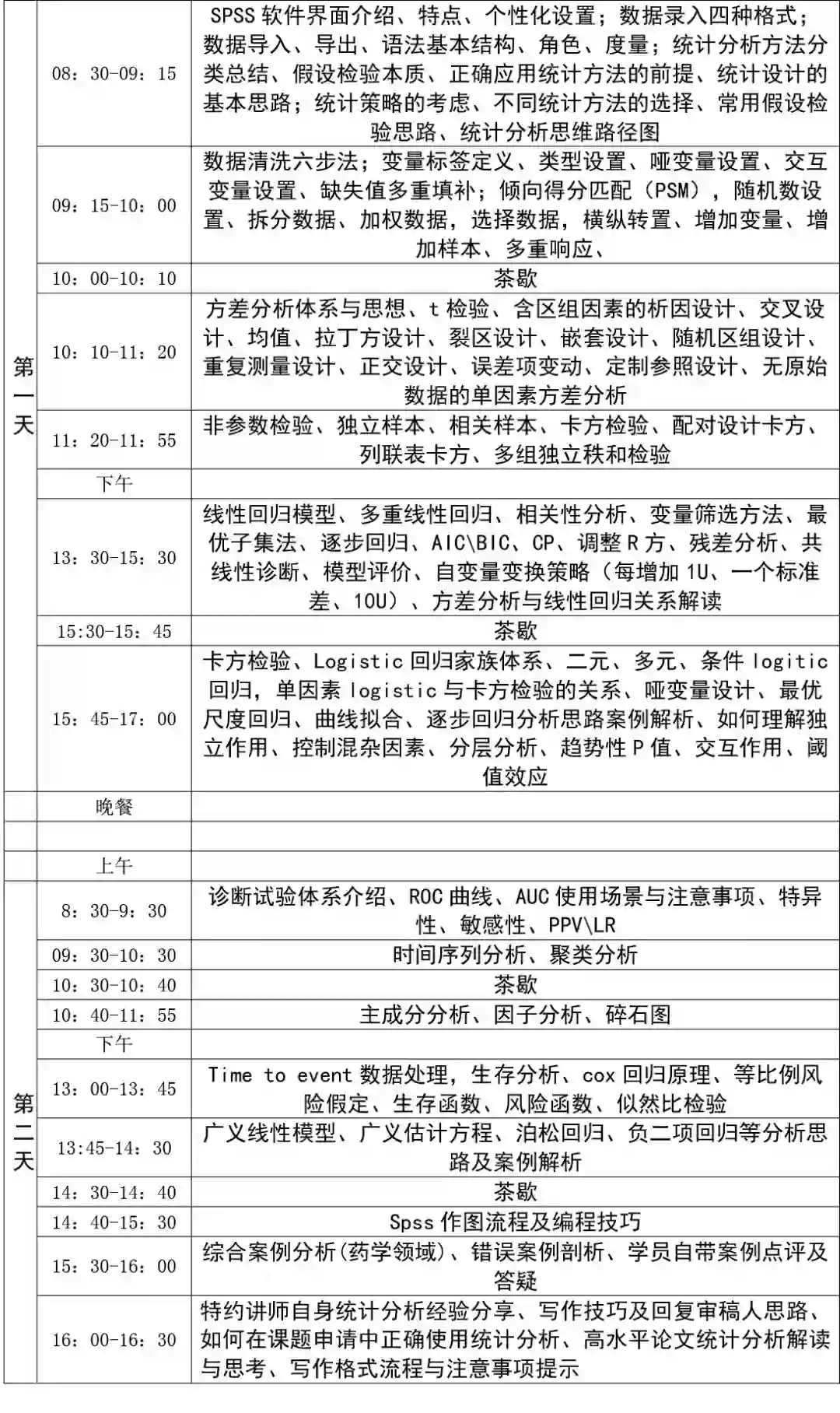 本课程以目前科研界最广泛使用的SPSS软件为操作载体,教大家如何把握核心,一步一步分析应对各种科研工作中常见的统计设计及数据统计分析,包括复杂多元统计。课程配有详细的内部笔记资料供复习,两整天的现场课程重在掌握各种统计模型的关注点、整套分析逻辑与思维,及了解统计设计和数据分析中常犯的错误及如何避免。同时自带电脑当场练习、交流、提问,以加深印象。如果您对科研设计、论文数据该用哪种统计方法及后续SPSS统计分析操作存在模糊不清,这是您不容错过的好课程……