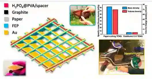 (三)中国科学院、重庆大学、美国佐治亚理工学院、台湾科技大学等机构的科研人员组成的团队,在中华传统剪纸艺术启发下,开发出一种轻量的、剪纸式样的摩擦电纳米发电机(TENG),能采集人体运动的能量,为电子产品供电。