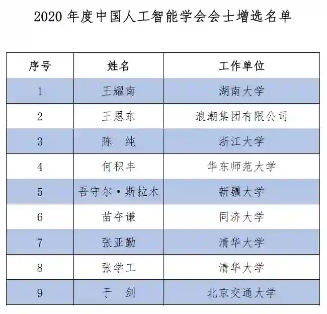 中国人工智能学会现将名单予以公示,公示期共14日(自2020年8月25日至9月7日)。