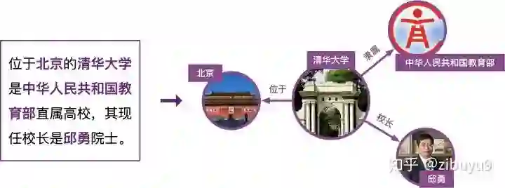 具体来说,给定一个句子和其中出现的实体,实体关系抽取模型需要根据句子语义信息推测实体间的关系。例如,给定句子:“清华大学坐落于北京近邻”以及实体“清华大学”与“北京”,模型可以通过语义得到“位于”的关系,并最终抽取出(清华大学,位于,北京)的知识三元组。