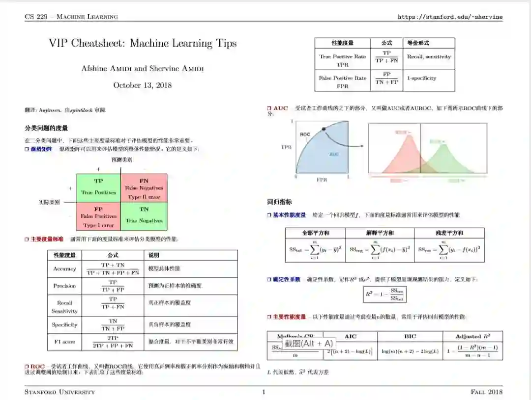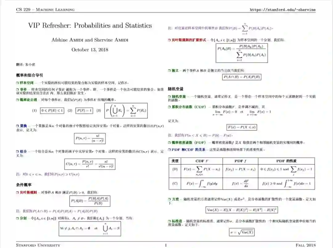 这份资源是CS229课程涉及知识点的概要总结,作者为Afshine Amidi and Shervine Amidi。提供中文、英文两个版本。