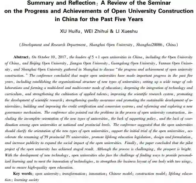 关键词:开放大学;转型;创新;中国模式;建设模式;终身教育;学习型社会