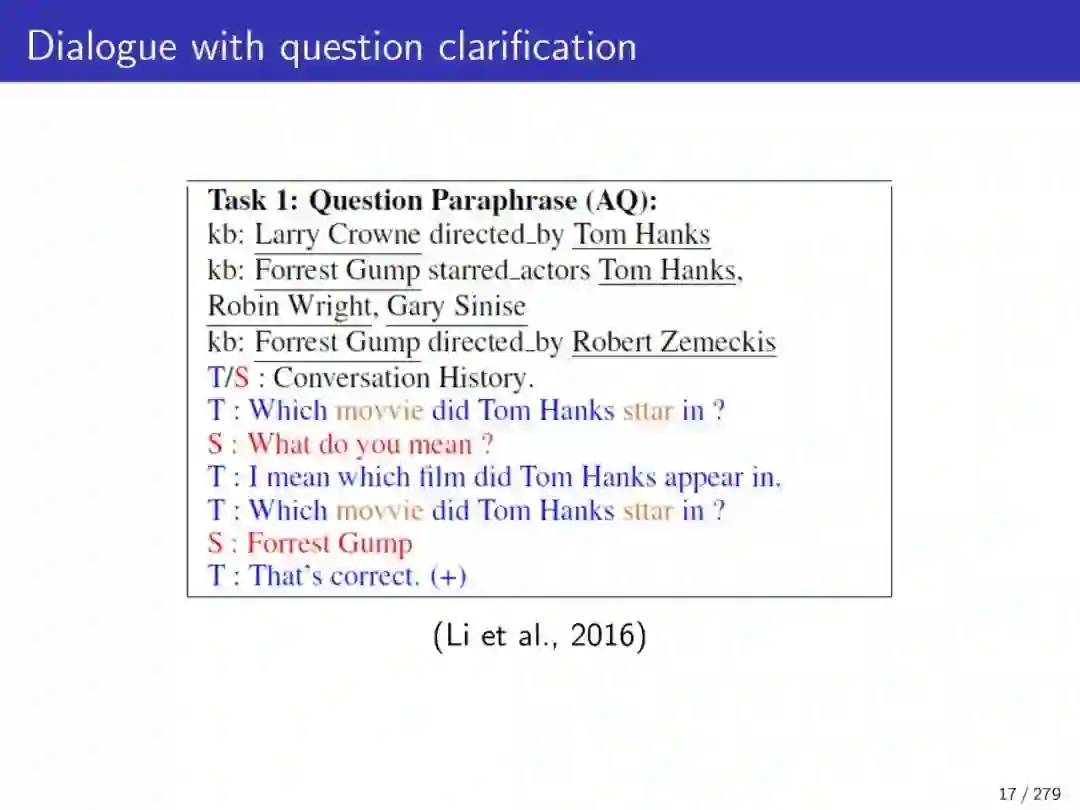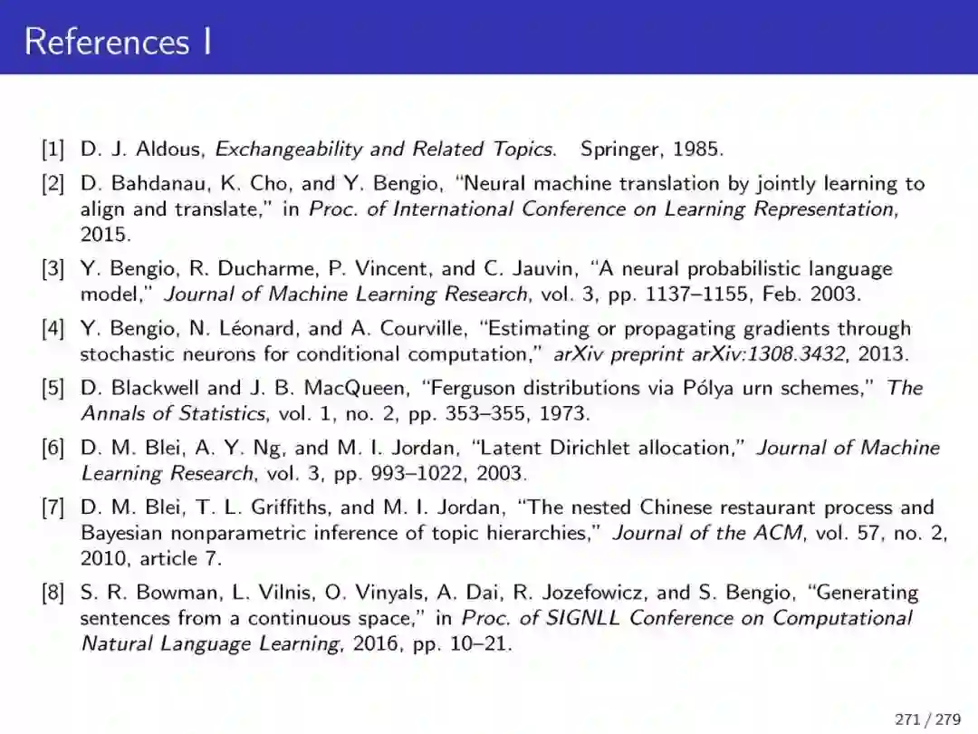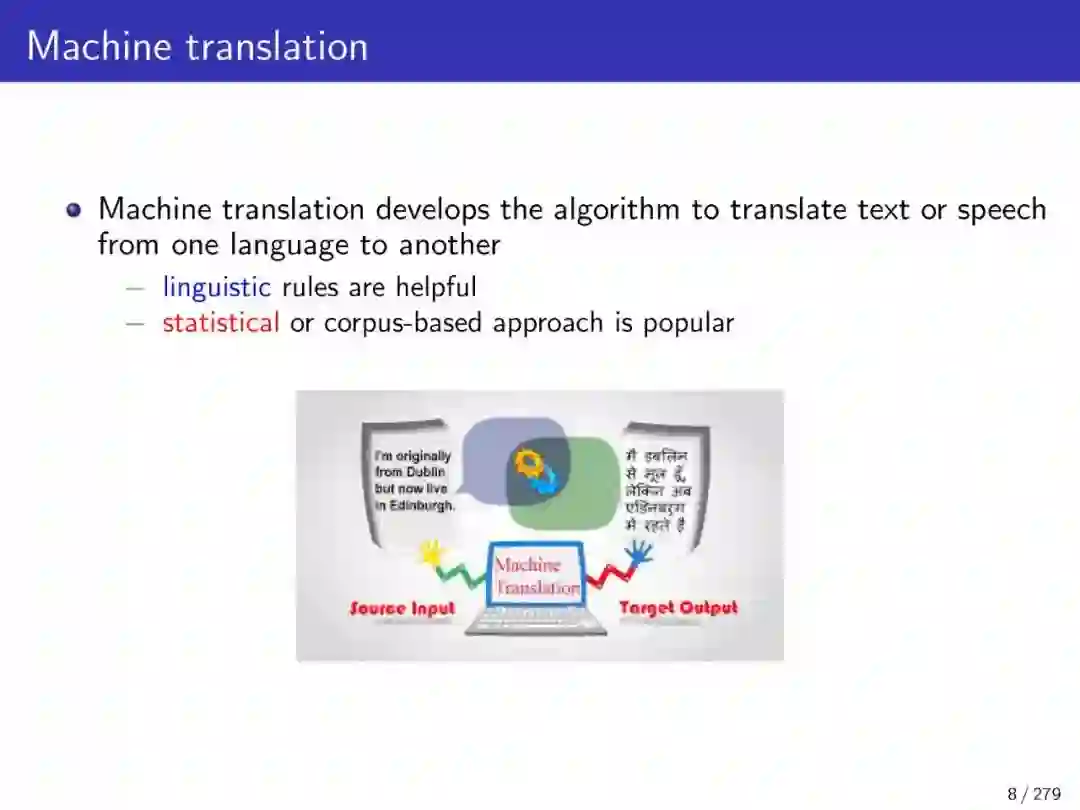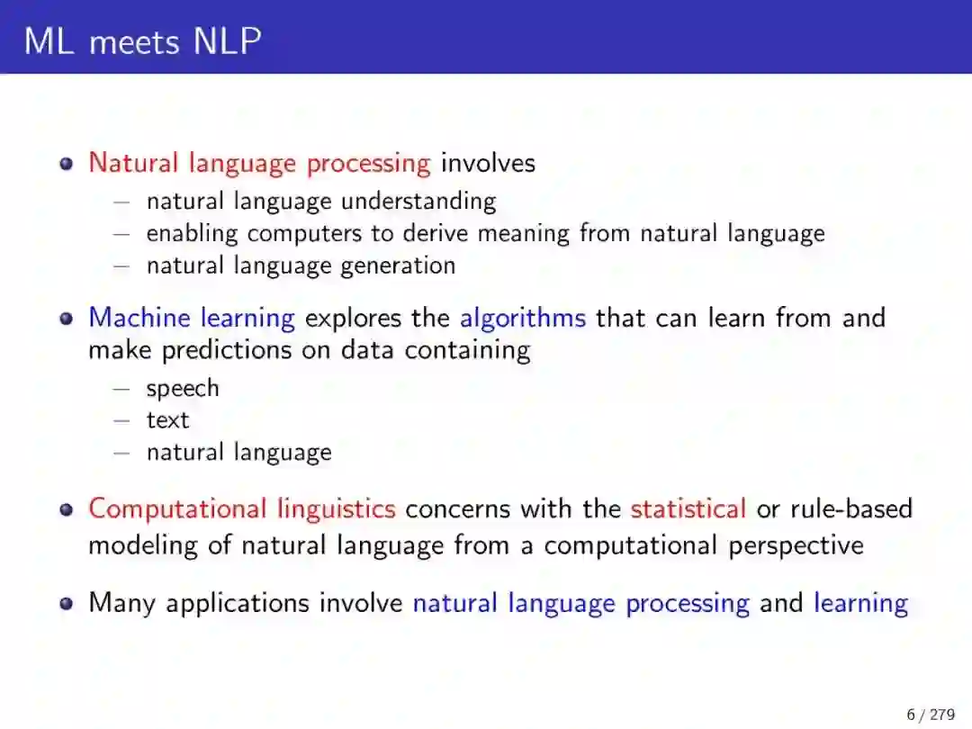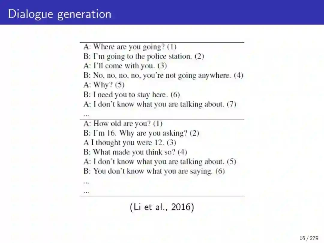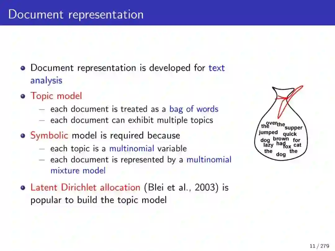 本教程介绍自然语言的深度贝叶斯和序列学习的进展,其广泛在语音识别、文档摘要、文本分类、文本分割、信息提取、图像标题生成、句子生成、对话控制、情感分类、推荐系统、问答和机器翻译等。传统上,“深度学习”被认为是基于实值判别模型进行推理或优化的学习过程。从大量词汇表中抽取的单词、句子、实体、动作和文档中的“语义结构”,在数理逻辑或计算机程序中可能不能很好地表达或正确地优化。自然语言的离散或连续潜在变量模型中的“分布函数”在模型推理中可能无法正确分解或估计。本教程介绍统计模型和神经网络的基本原理,并专注于一系列先进的贝叶斯模型和深度模型包括分层狄利克雷的过程,中国餐馆的过程,层次Pitman-Yor过程,印度自助过程,递归神经网络,长期短期记忆,sequence-to-sequence模型、变分auto-encoder,生成对抗网络,注意机制,memory-augmented神经网络、随机神经网络,预测状态神经网络、策略梯度和强化学习。我们将介绍这些模型是如何连接的,以及它们为什么适用于自然语言中符号和复杂模式的各种应用程序。针对复杂模型的优化问题,提出了变分推理和抽样方法。词语和句子的嵌入、聚类和共聚类与语言和语义约束相结合。针对深度贝叶斯学习和理解中的不同问题,提出了一系列的案例研究。最后,我们将指出一些未来研究的方向和展望。