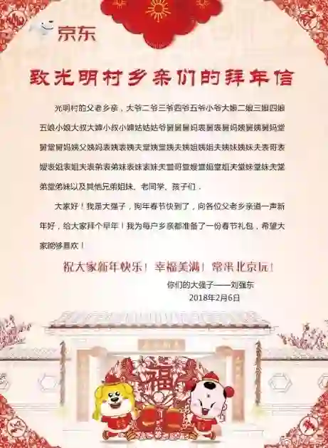 刘强东给全体村民的拜年信:自称大强子,为乡亲准备了一份春节礼包