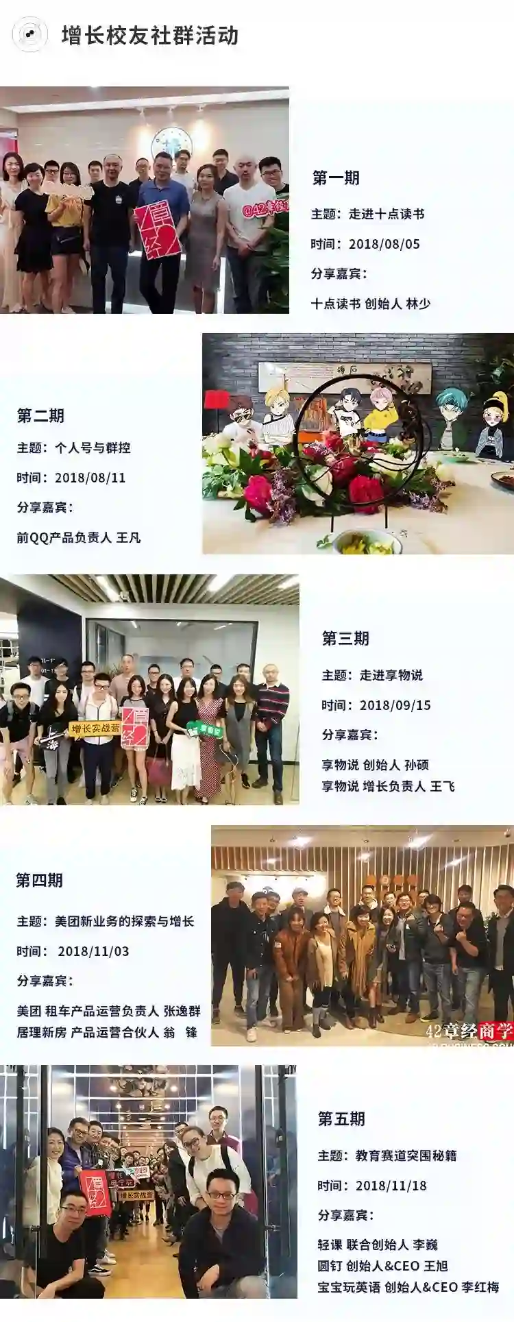截止目前,「校友活动」已经开展了五期。感兴趣的可以点击回看一下第四期和第五期的分享介绍。从这几期校友们的分享水平来看,只能忍不住自叹一句:「增长天团」真的卧虎藏龙。
