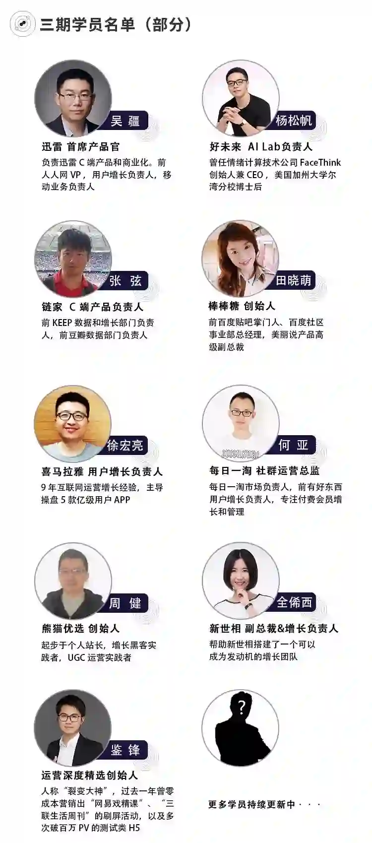 以上是目前第一批确认的优秀学员,剩下的,就等着你来壮大这次「增长天团」的阵营啦。