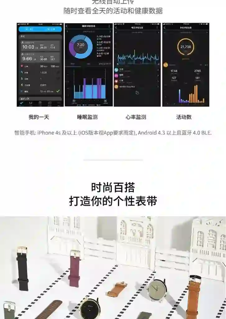 兼顾了科技和时尚感的vivomove hr作为日常配饰出街完全能打,无论是直男直女都没有性别的区分度,钢制表壳配上皮质表带完美可以hold住你的日常着装,不满意?Garmin还提供多种材质和颜色的表带选购,看来也想尝尝苹果表那样靠时尚快消赚钱的套路!总之,在社交场合,这块运动表仍然可以充当好一个好配饰的角色。就我个人体验许多智能手表以后,我个人的答案vivomove hr最让人惊喜的是它的手表功能。