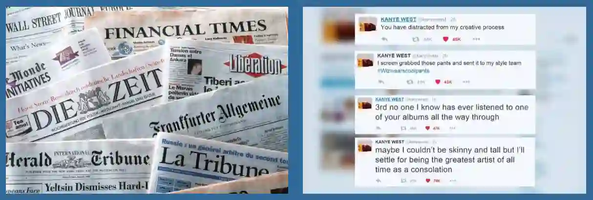 另一个常见的域适应场景涉及到适应不同的文本类型:标准的自然语言处理工具(例如词性标签器或者解析器)一般都是在诸如华尔街日报这种新闻数据上进行训练,这种新闻数据在过去都是用来评价这些模型的。然而,在新闻数据上训练出的模型面临挑战,难以应对更加新颖的文本形式,例如社交媒体信息。
