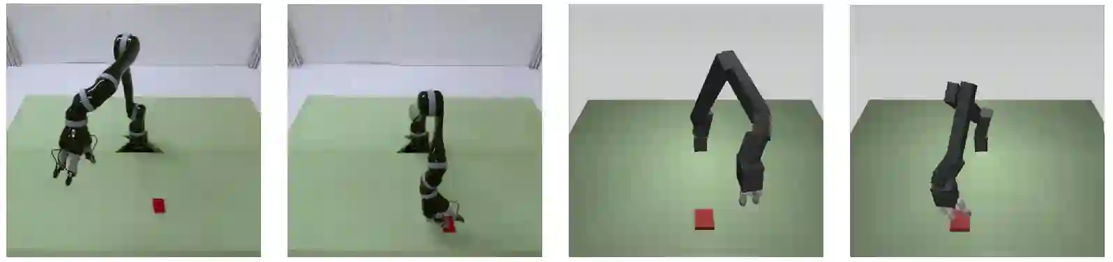 另一个必需从模拟中学习的领域是机器人:在实际的机器人上训练模型是非常缓慢和昂贵的。从模拟中学习并且将知识迁移到现实世界的机器人上的方式能缓解这个问题,并且这种方面最近正得到越来越多的关注 [8]。图 8 中可以看到一个在现实世界和模拟中操作数据的一个例子。