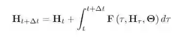 这一观点将前向传播过程,重定义为常微分方程(ODE)中初值求解的问题。在这个假设下,可以直接对常微分方程进行建模,并可以提高神经网络在涉及连续时间序列任务上的性能。