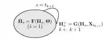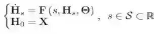 换句话说,F 利用图 G 节点的连接信息及其节点特征来描述 H 在 S 中的变化过程。其中,S 是模型的深度域;不同于 GNN 由自然数的子集来指定的深度域,S 是连续的,它表示由函数 F 定义的常微分方程的积分域。