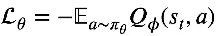 给定 𝑄_𝜙(𝑠_𝑡,𝑎_𝑡),Actor 再通过最小化以下损失函数来学习参数: