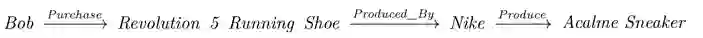 这条路径说明推荐“Acalme Sneaker”给 Bob,是因为 Bob 曾经购买过同品牌(Nike)的鞋 Revolution 5 Running Shoe。