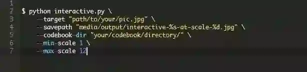 本项目将目标图像分割成图案块(使用scale参数控制块大小),对于每个图案块补丁,使用L2相似性度量法(使用Facebook的faiss库进行超快查找) 来找到最接近的codebook算法图案块来替换它。