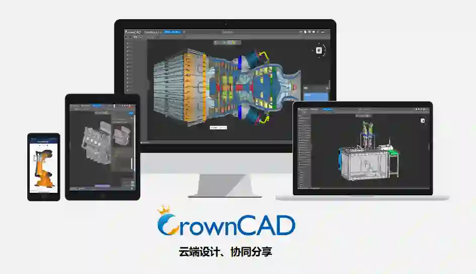 云架构具有协同设计、数据管理等优势,由此,CrownCAD 也具备有很多传统 CAD 软件所没有的功能,比如无需安装,打开浏览器就能多端运行;支持多用户在线、异地、多终端协同设计;支持公有云、私有云、混合云部署;支持版本控制等。