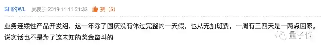 对此,有人补充道:业务连续性项目组,这一年除了国庆没有休过完整的一天假,经常一两点回家,说实话也不是为了这未知的奖金奋斗的。